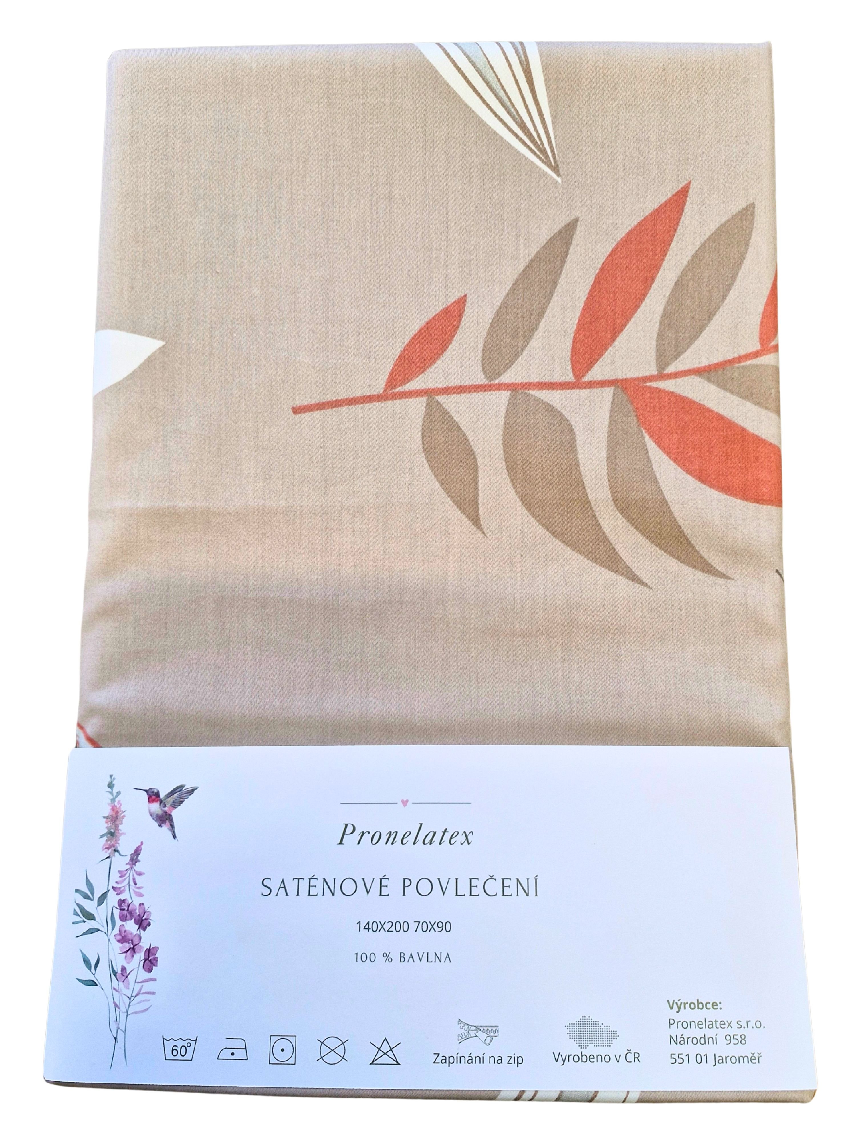 Saténové povlečení Listy cihlové 140X200 70X90